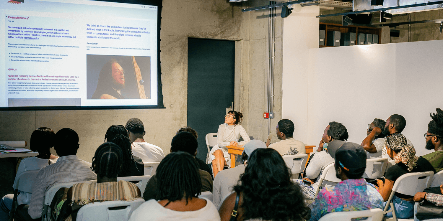 On September 27 2024, G.A.S. Foundation hosted After the Future, an immersive evening led by multidisciplinary artist, researcher, and current G.A.S. resident Alexandra Martens Serrano. The event began with a short lecture, where Alexandra uncovered her innovative approach to art, science, and social change. A brief panel discussion followed, where Timi Oludare and (Ìfẹ́) Ifeoluwa Osunkoya members of the research-driven collective, Ala Praxis joined her in conversation on the speed of the future, and what technology means to practitioners at the intersection of art and science. Following this, guests participated in a collaborative drawing exercise inspired by Cadavre Exquis, a gamified surrealist technique where participants contribute to a collective artwork without seeing the previous contributions. The outcomes of this exercise helped to build on dialogue around the evolving relationship between art and technology.