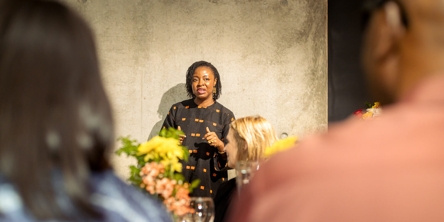 The night opened with a champagne reception in the courtyard, where guests mingled before taking their seats. Alayo Akingkube VIP consultant for Frieze began the programme with remarks on Frieze’s global activities and its upcoming art fair in Los Angeles, encouraging applications from gallerists, while inviting collectors to engage more deeply with the platform. This was followed by Moni Aisida, who shared an overview of the Foundation’s mission, programmes, and the community sustaining its work, acknowledging supporters present in the room.