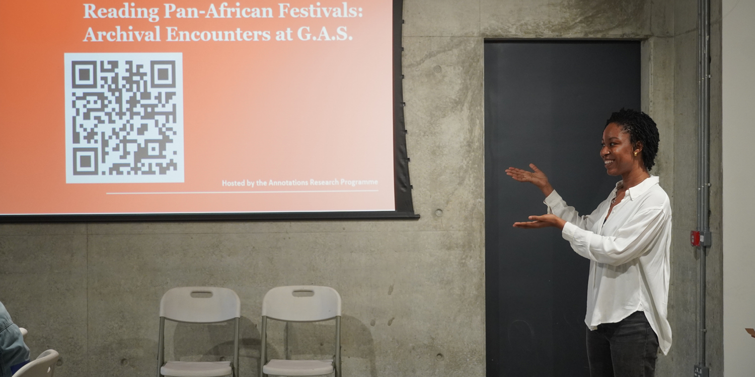 Five weeks into the Annotations Programme, G.A.S. Foundation invited guests to share in our learnings on archival practice, and explore our research into Pan-African Festivals such as FESTAC '77. We were joined for a reading session hosted by our Research Associates and Interns-in-Residence, developed in response to the mentorship of Archival Consciousness, who work with archivists and institutions to make library collections more accessible.