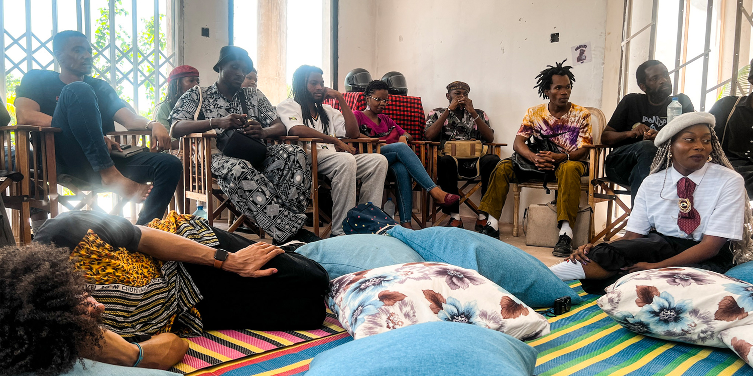 In early May 2024, curators E.N. Mirembe, Jesse Mpango, and Rosie Olang’ Odhiambo led a series of workshops across Kampala, Dar es Salaam, and Nairobi in collaboration with British-Ghanaian artist and filmmaker Larry Achiampong. These workshops, developed as part of the Art Exchange: Moving Image programme, were conceptualised in partnership with Achiampong following a meeting between the artist and the curatorial cohort during the programme's London residency week in December 2023.