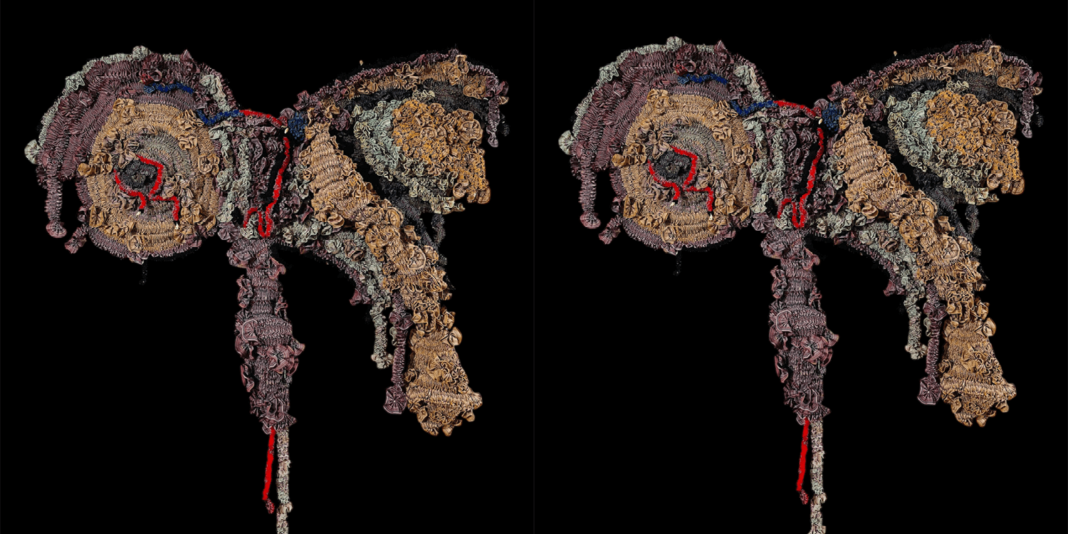 Withered paradise, net belts, 150 x 118 x 24cm, 2025. Image courtesy of the artist.
