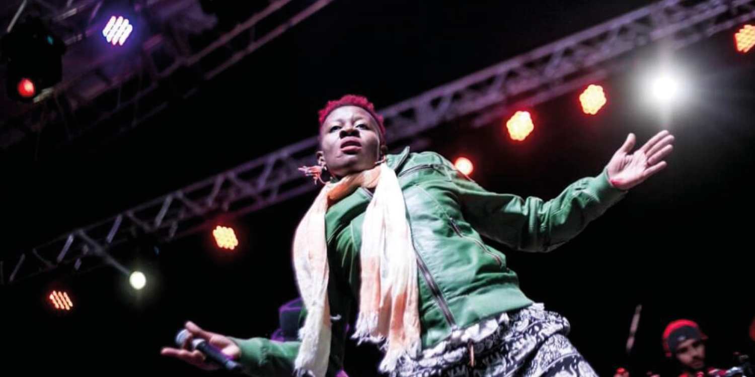 Okwei Odili performaing at a festival. Image courtesy of afrikajump.