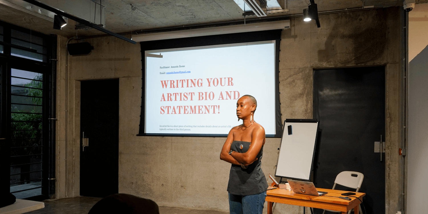 Amanda opened with a session on crafting compelling artist statements that are reflective, precise, and accessible. She emphasised how strong writing can open doors and build deeper connections with curators, funders, and the public. Shatha followed with a workshop on building professional portfolios, describing them as strategic visual narratives that convey rigour, readiness, and vision. Her session sparked questions around structure, tone, and how to tailor one’s portfolio to different contexts. The day closed with Nana’s session on documentation as a core part of practice. Drawing on examples like Ghanaian sculptor El Anatsui, she highlighted the importance of sustainable archiving habits, through sketches, notes, and signatures, as a way to stay organised, reflect on growth, and support long-term professional development.