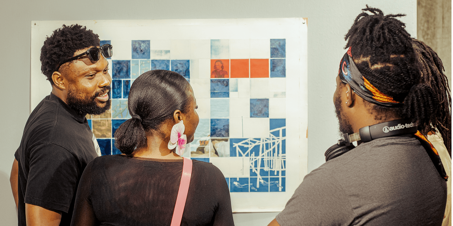 Adeoluwa Oluwajoba is a Lagos-based mixed-media artist whose practice combines painting, collage, and image-transfer processes to construct layered visual compositions of bodies and landscapes. Working across photographic and traditional printmaking techniques, he explores the mechanics of image reproduction and the ways meaning is assembled through fragments. Adeoluwa’s 3-week residency at G.A.S. Lagos ran from 9 March to 3 April 2026. During this period, he focused on experimenting with cyanotype printing on fabric, alongside conducting research at the G.A.S. Library and the Centre for Contemporary Art Library. His residency process involved moving through the city to gather images and observe public spaces, using these encounters to inform his ongoing body of work, Alice in a DaydreamThe residency culminated in The Cyanotype Studio on 2 April 2026, a two-part programme comprising a hands-on cyanotype printing workshop and an open studio presentation. The session introduced participants to cyanotype as both a photographic technique and a drawing tool, guiding them through processes of image-making using both photographic negatives and hand-drawn forms, before inviting audiences into a presentation of works developed during the residency. Adeoluwa’s residency was generously supported by Deutsche Bank.