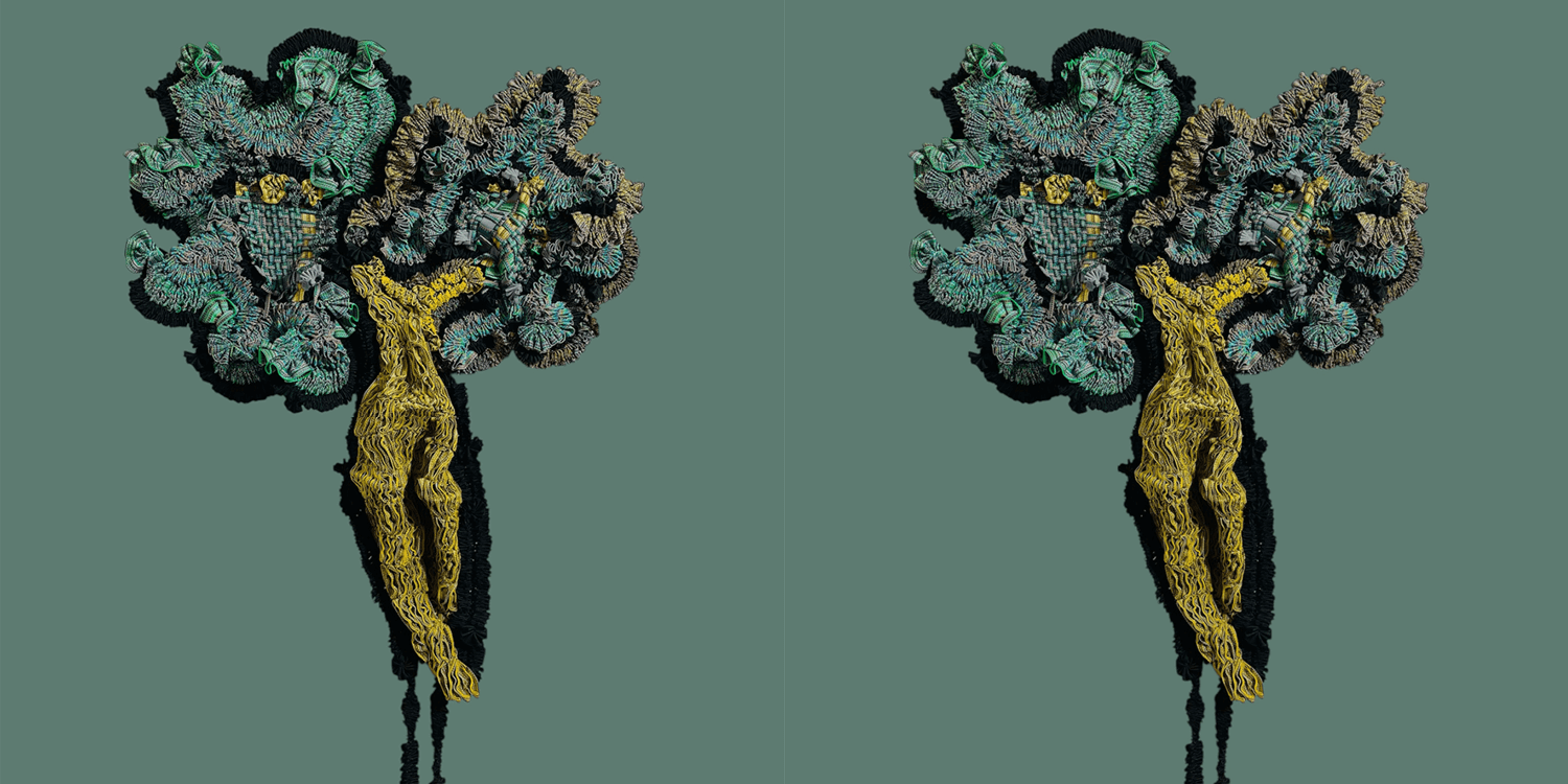 Withered paradise, net belts, 150 x 118 x 24cm, 2025. Image courtesy of the artist.